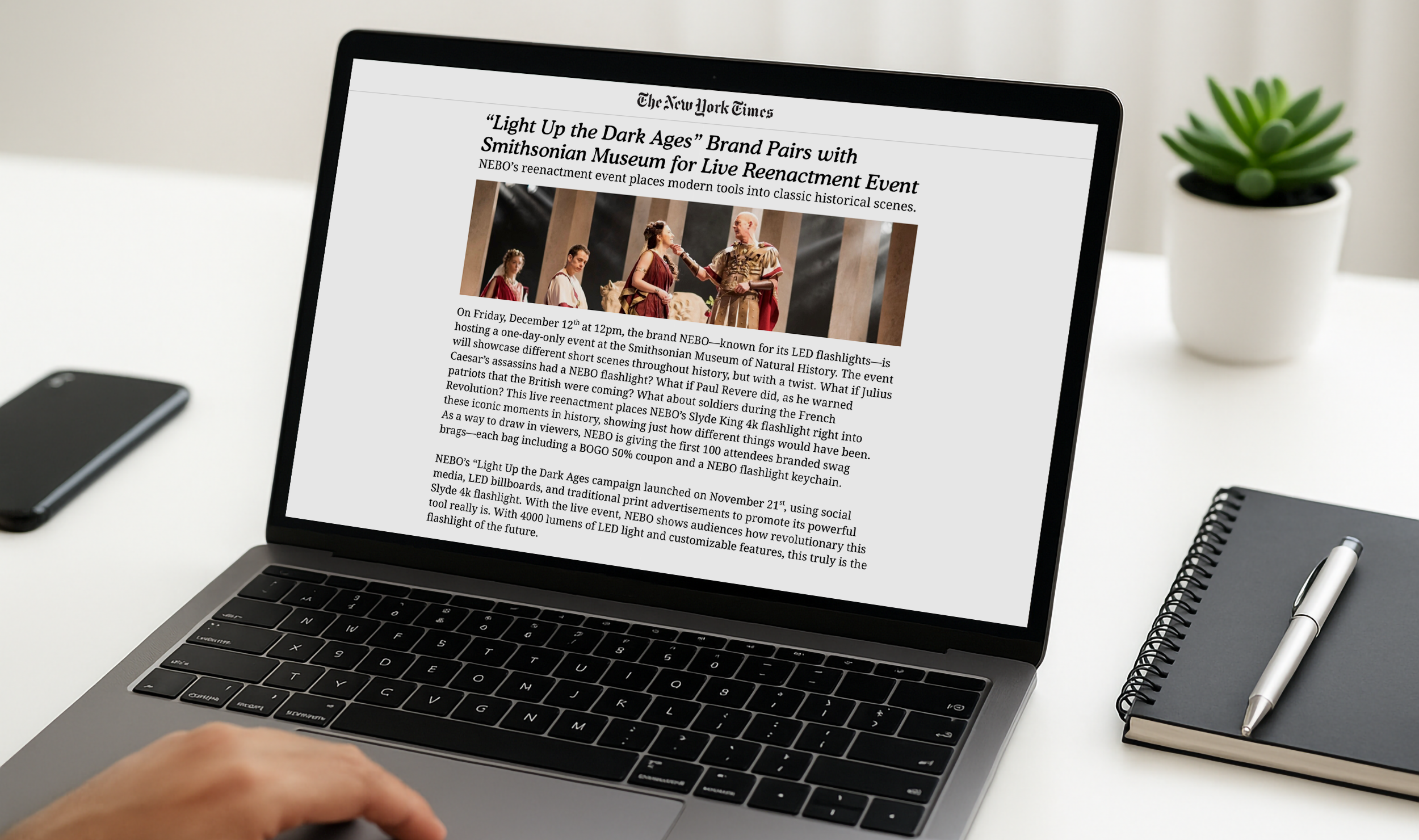 On Friday, December 12th at 12pm, the brand NEBO—known for its LED flashlights—is hosting a one-day-only event at the Smithsonian Museum of Natural History. The event will showcase different short scenes throughout history, but with a twist. What if Julius Caesar’s assassins had a NEBO flashlight? What if Paul Revere did, as he warned patriots that the British were coming? What about soldiers during the French Revolution? This live reenactment places NEBO’s Slyde King 4k flashlight right into these iconic moments in history, showing just how different things would have been. As a way to draw in viewers, NEBO is giving the first 100 attendees branded swag brags—each bag including a BOGO 50% coupon and a NEBO flashlight keychain.